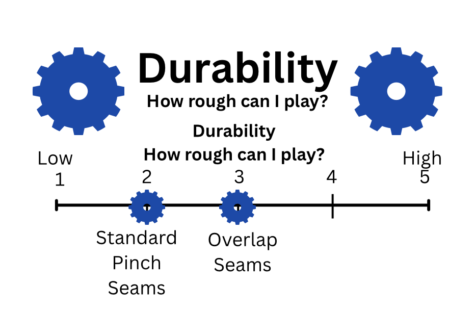 Pinched seam - The first build quality uses pinched seams. It's made like the balloon dogs and pup/fox suits. It's a lower cost and good for most applications but not good for rough play. Made from colored vinyl and print only for small things like eyes. Inside and outside is 0.3mm PVC.