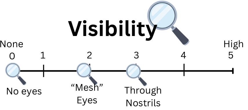 -Mesh at the character's eyes. While this option overlaps with the "breathing through the eyes" option, it has very limited vision and only allows the wearer to see out if they bend at the waist and look up.